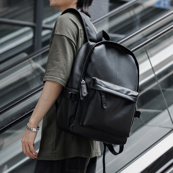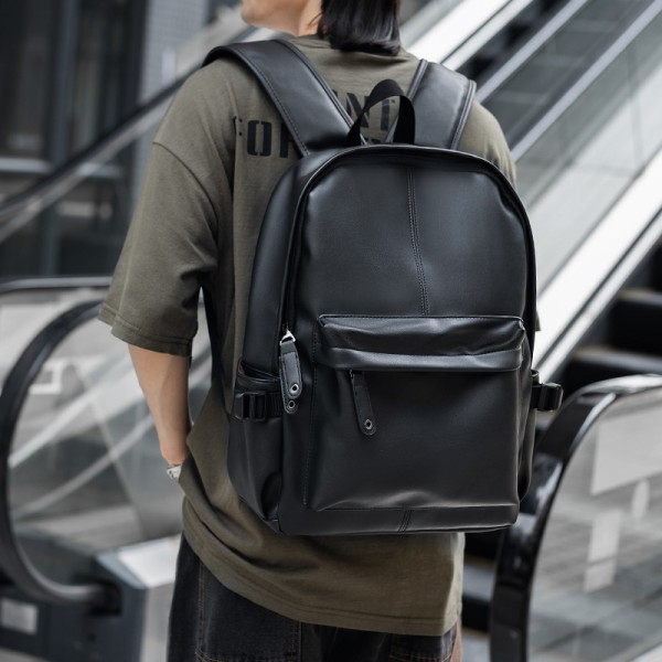 Big Capacity Durable PU Leather Backpack Laptop Bag Men Laptop Backpack Computer Bag For Leisure Business Commuting